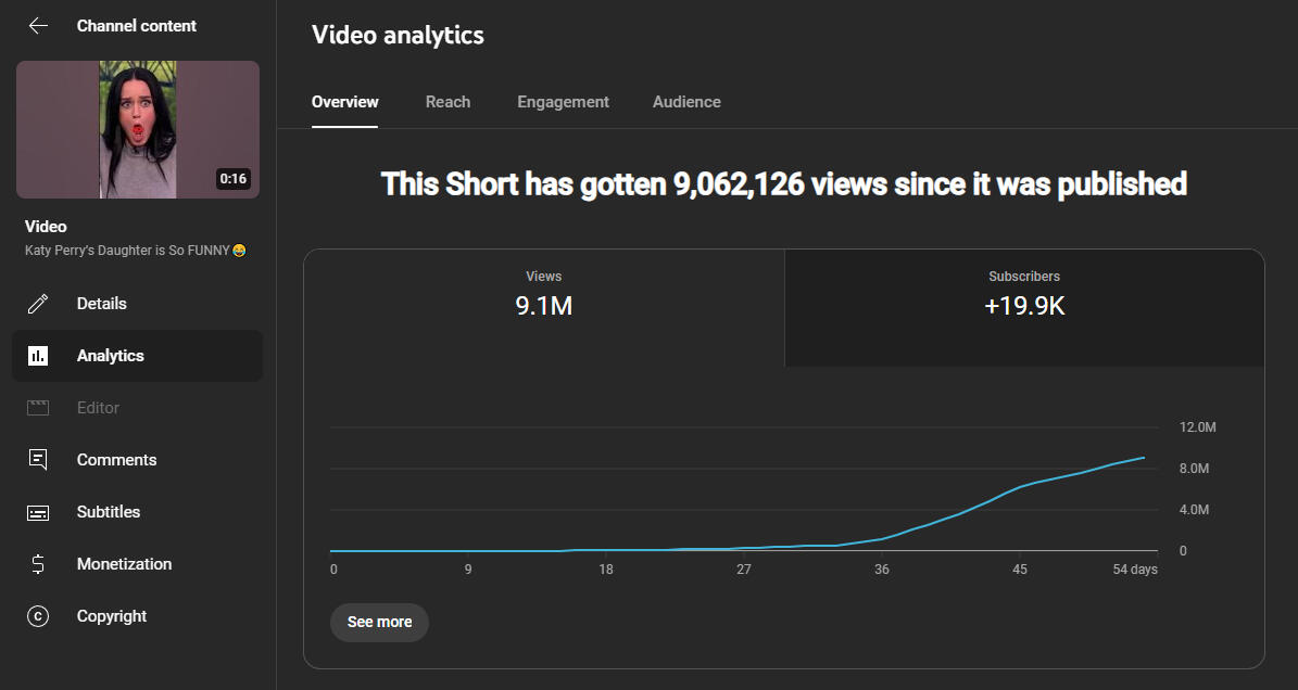 Over 75 Million Views and 100k subscribers reached for my client's brand new YouTube channel in less than 3 months of working together.