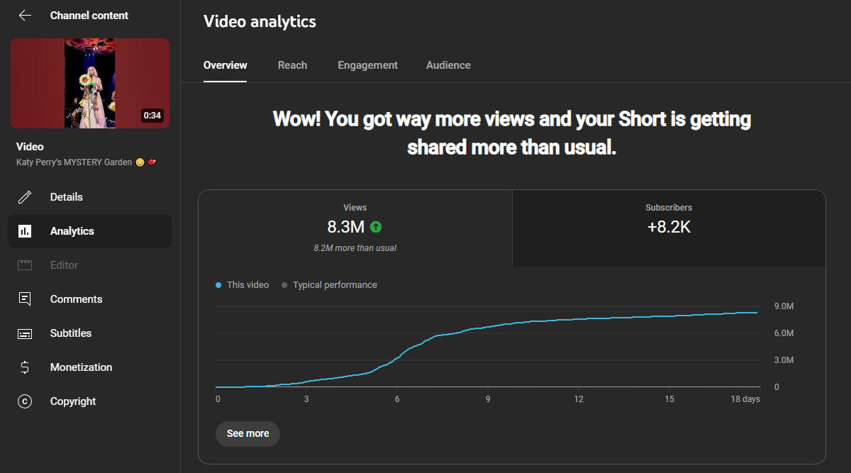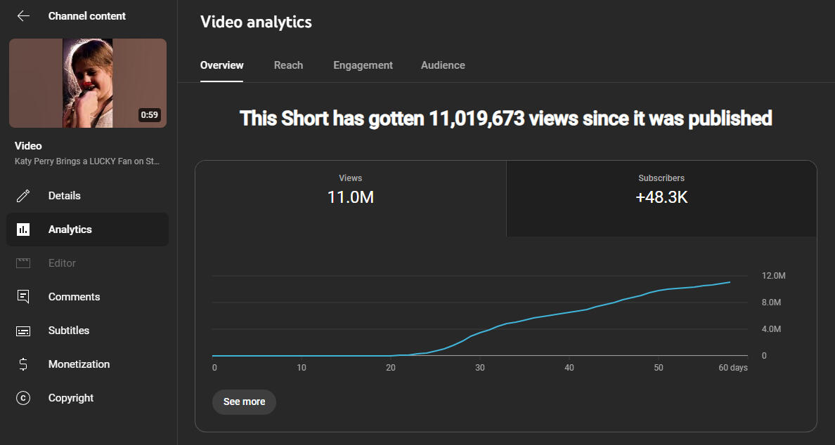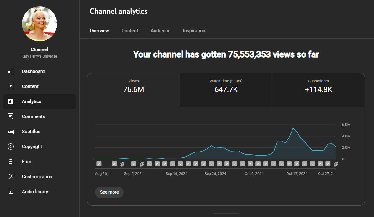 Over 75 Million Views and 100k subscribers reached for my client's brand new YouTube channel in less than 3 months of working together.